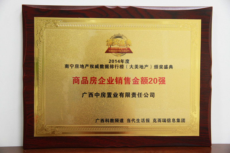• 2014年度南寧房地產(chǎn)權威數(shù)據(jù)排行榜頒獎盛典商品房企業(yè)銷售金額20強