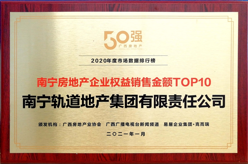 • 公司榮獲2020年度南寧房地產(chǎn)企業(yè)權益銷售金額TOP10稱號