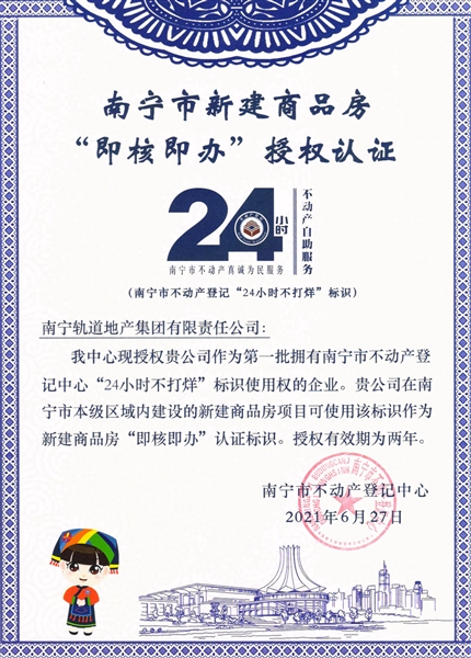 • 公司獲得南寧市新建商品房“即核即辦”授權認證