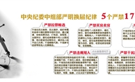 “5個(gè)嚴(yán)禁”“17”個(gè)不準(zhǔn)”和“5個(gè)一律” “5個(gè)嚴(yán)禁”:  嚴(yán)禁拉票賄選、嚴(yán)禁買(mǎi)官賣(mài)官、嚴(yán)禁跑官要官、嚴(yán)禁違規(guī)用人、嚴(yán)禁干擾換屆“17個(gè)不準(zhǔn)”:  1、不準(zhǔn)在民主推薦、民主測(cè)評(píng)、組織考察和選舉中搞拉票等非組織活動(dòng),通過(guò)宴請(qǐng)、安排消費(fèi)活動(dòng)、打電話、發(fā)短信、當(dāng)面拜訪、委托或者授意中間人出面說(shuō)情、舉辦聯(lián)誼活動(dòng)等形