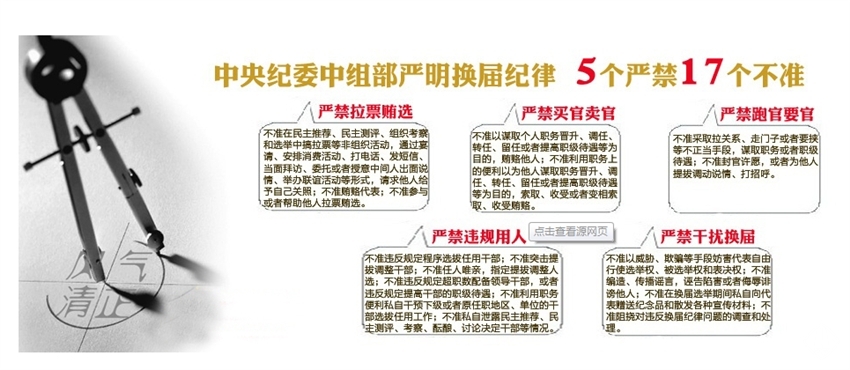 嚴禁拉票賄選、嚴禁買官賣官、嚴禁跑官要官、嚴禁違規(guī)用人、嚴禁干擾換屆