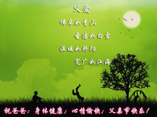 每年的6月第三個(gè)星期天就是父親節(jié),從來就沒跟老爸表示過什么,從小老爸對(duì)我的愛一直都是默默地,無(wú)言的,深沉德,不記得有多少次的細(xì)節(jié)讓我感動(dòng)。