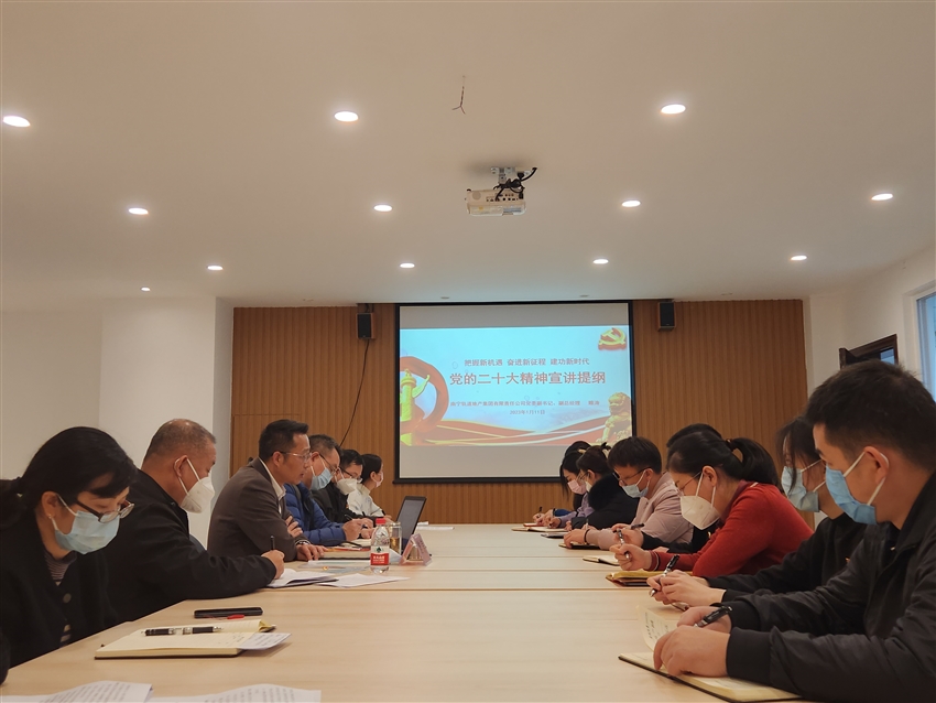 1月11日上午,軌道地產(chǎn)公司黨委副書記睢濤到軌道地產(chǎn)建筑公司宣講黨的二十大精神及開展座談交流活動(dòng)。軌道地產(chǎn)建筑公司領(lǐng)導(dǎo)班子、中層干部、支部黨員及入黨積極分子聆聽宣講會(huì)。