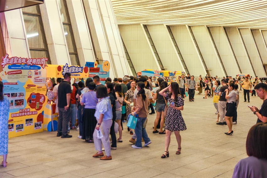 “軌道聚友趣嘉年華”4大游戲互動(dòng)的現(xiàn)場(chǎng),大人孩子排起長(zhǎng)隊(duì)參與,在歡聲笑語(yǔ)中收獲定制扇子、飲用水等精美禮品;蔚來(lái)汽車(chē)展區(qū)科技感十足,吸引眾多業(yè)主駐足體驗(yàn)。